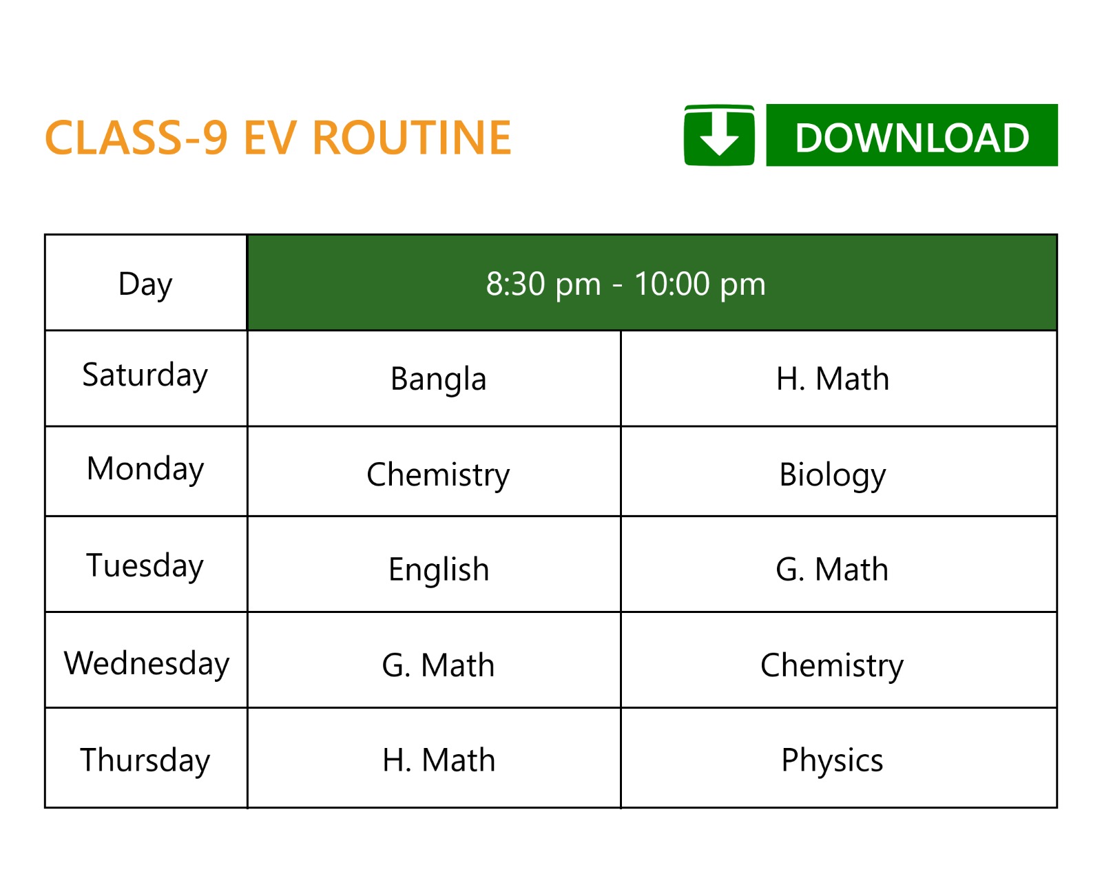✓ ক্লাস শুরু: ০১ জানুয়ারি হইতে ৩০ শে নভেম্বর পর্যন্ত।
